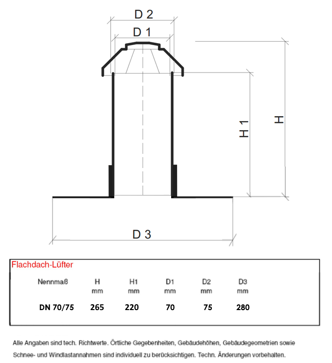 Produktinformationen "Flachdachlüfter DN 70/75"