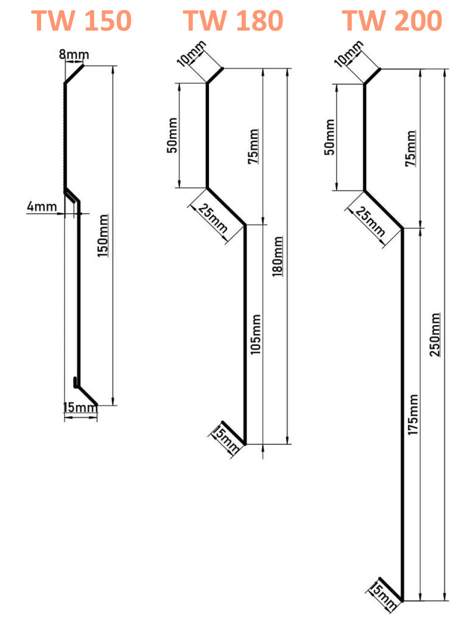 Profilgröße TW 150: 3.000 x 150 mm (Profilhöhen 180 und 250 mm auf Anfrage)