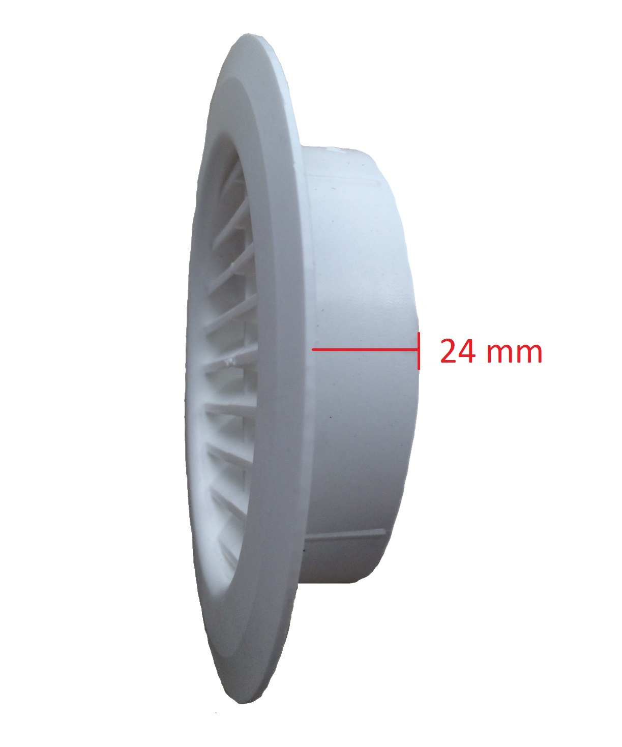 # Lüftungsgitter, Abluftgitter, Fertiggarage, Garage, Dunstabzug, Lüftungsrosette, Mauerlüfter, Raumlüfter, Raumentlüftung, Kunststoff, Estelit, Zapf, Rekers, Kplus, Grötz, Flansch, rund, weiß, schwarz, 90 mm, 125 mm