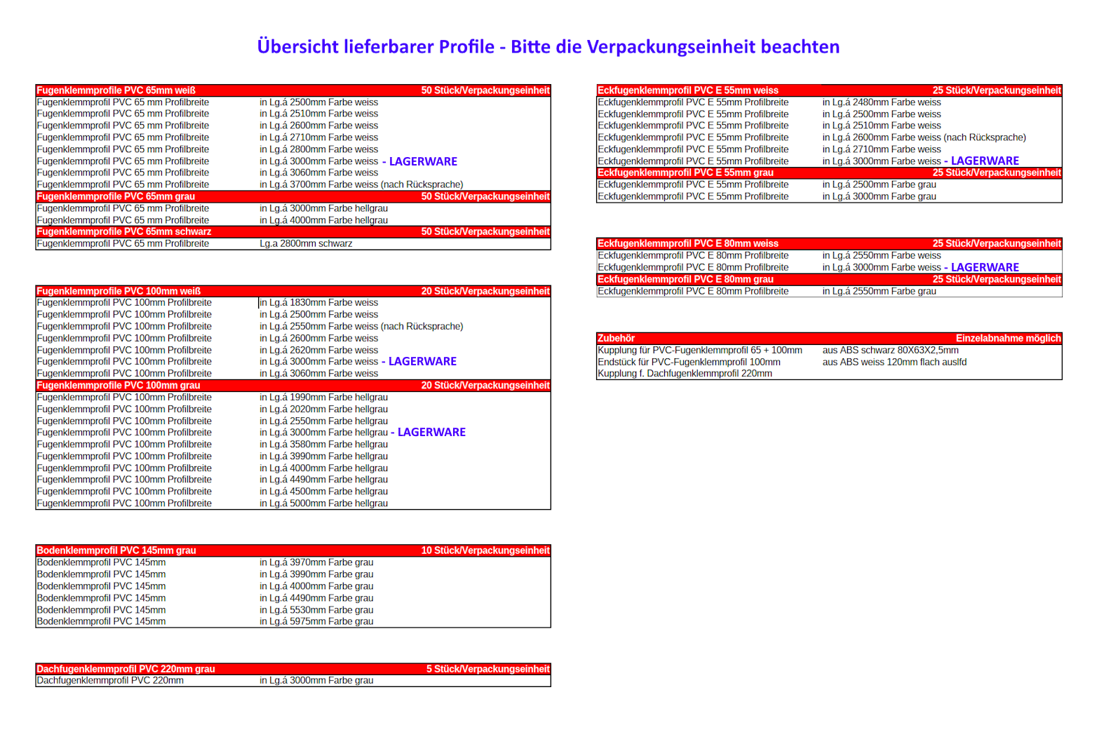 - Lieferumfang pro Profil: