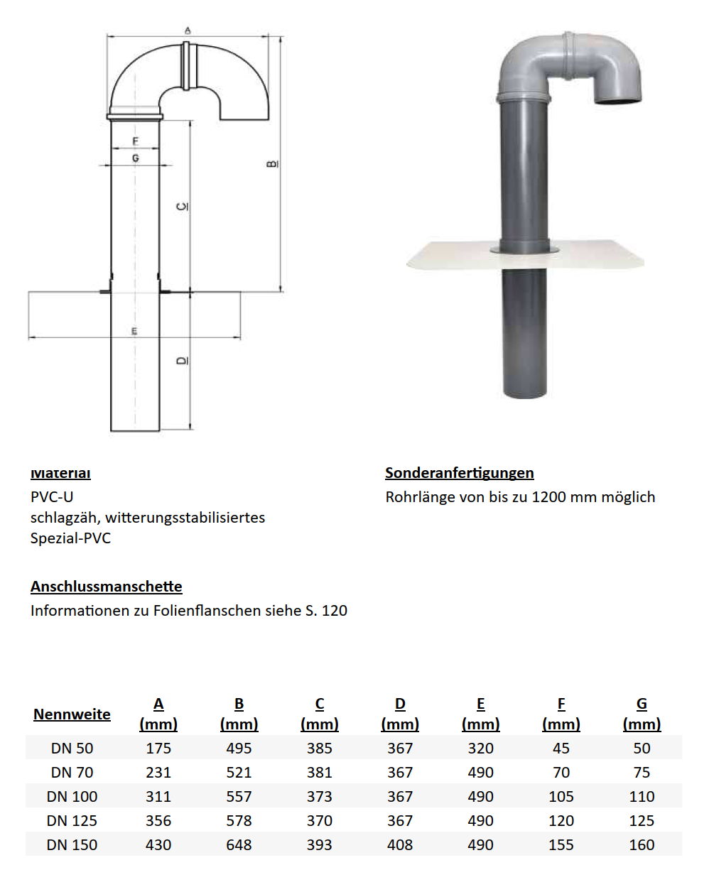 # Schwanenhals, Flachdachkabeldurchführung, Anschlussrohr, Dachdurchführung, Kabel, Antenne, Solar, Flachdach, DN 50, DN 70, DN 75, DN 100, DN 110, DN 150, DN 200