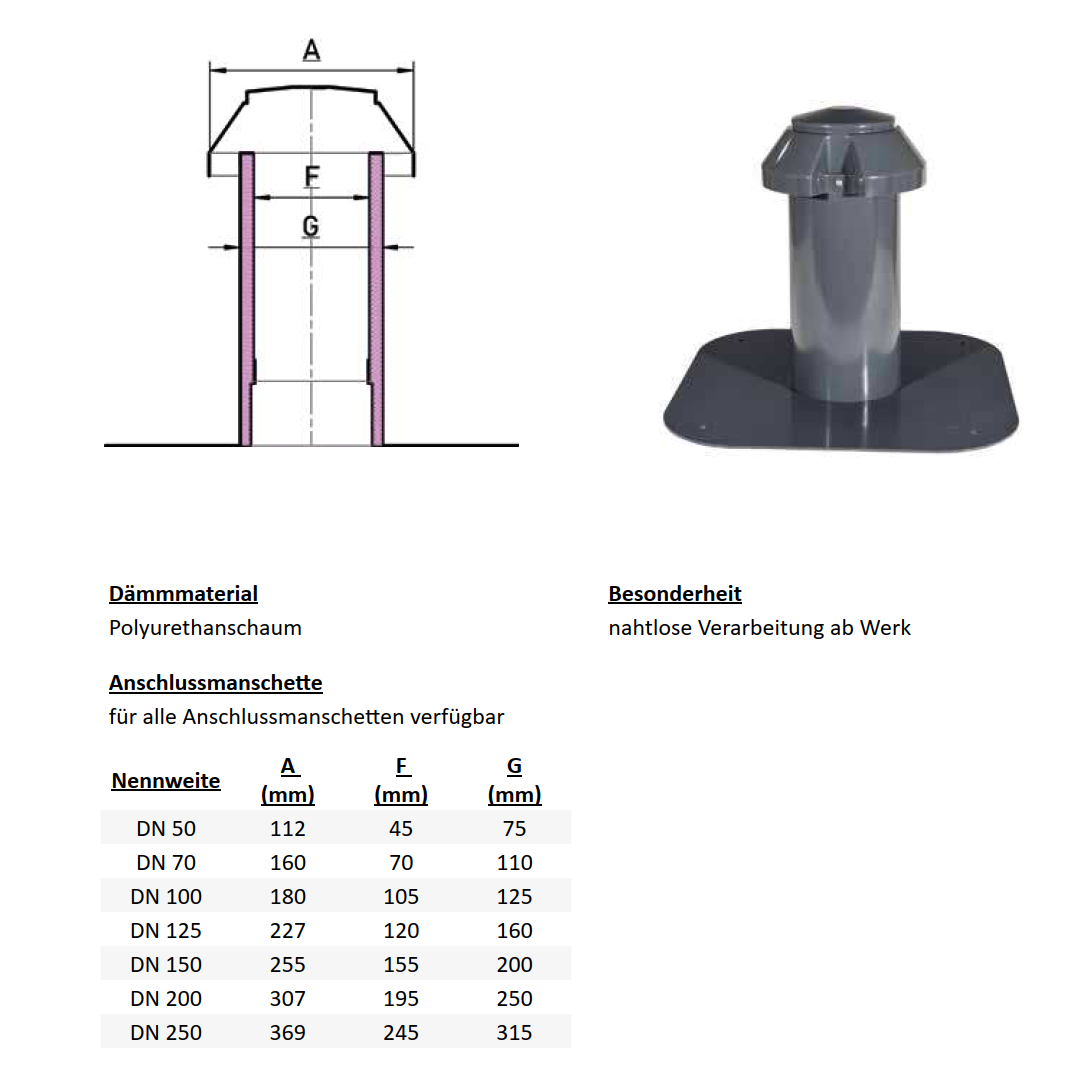 Die Anschlussverbindung im unteren Teil ist weiterhin vorhanden.Somit können Sie ein, der Lüftergröße entsprechendes, DN Rohr einstecken.