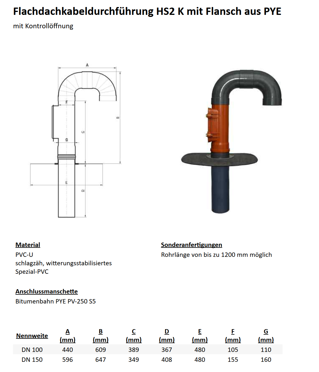 # Schwanenhals, Öffnung, Wartung, Kontrolle, Flachdachkabeldurchführung, Anschlussrohr, Dachdurchführung, Kabel, Antenne, Solar, Flachdach, DN 100, DN 110, DN 150