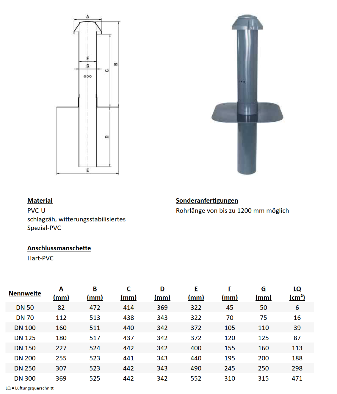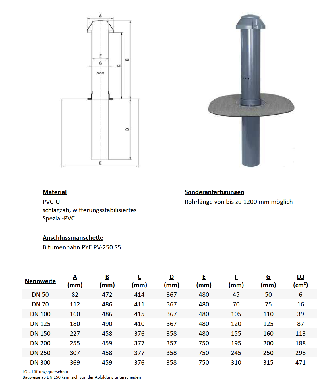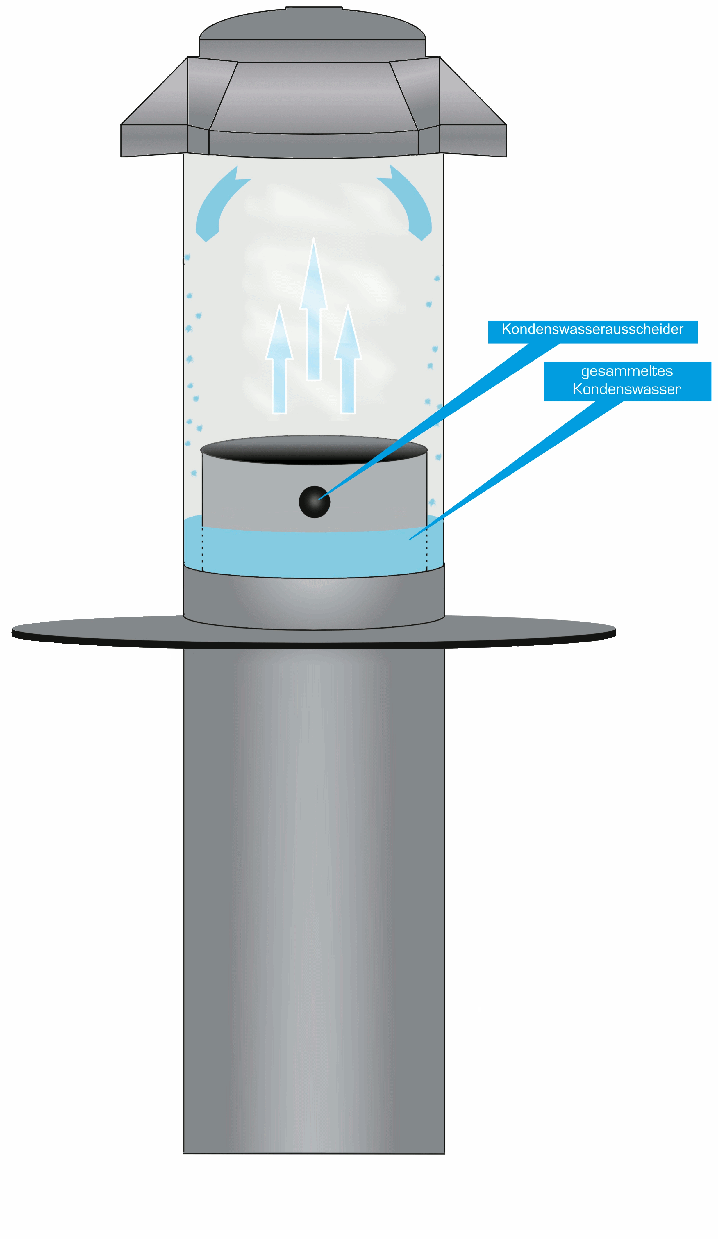 Der Wasserablauf verhindert, dass die an der Rohrinnenseite anfallende Feuchtigkeit zurück ins Rohr und/oder die Dachfläche läuft.