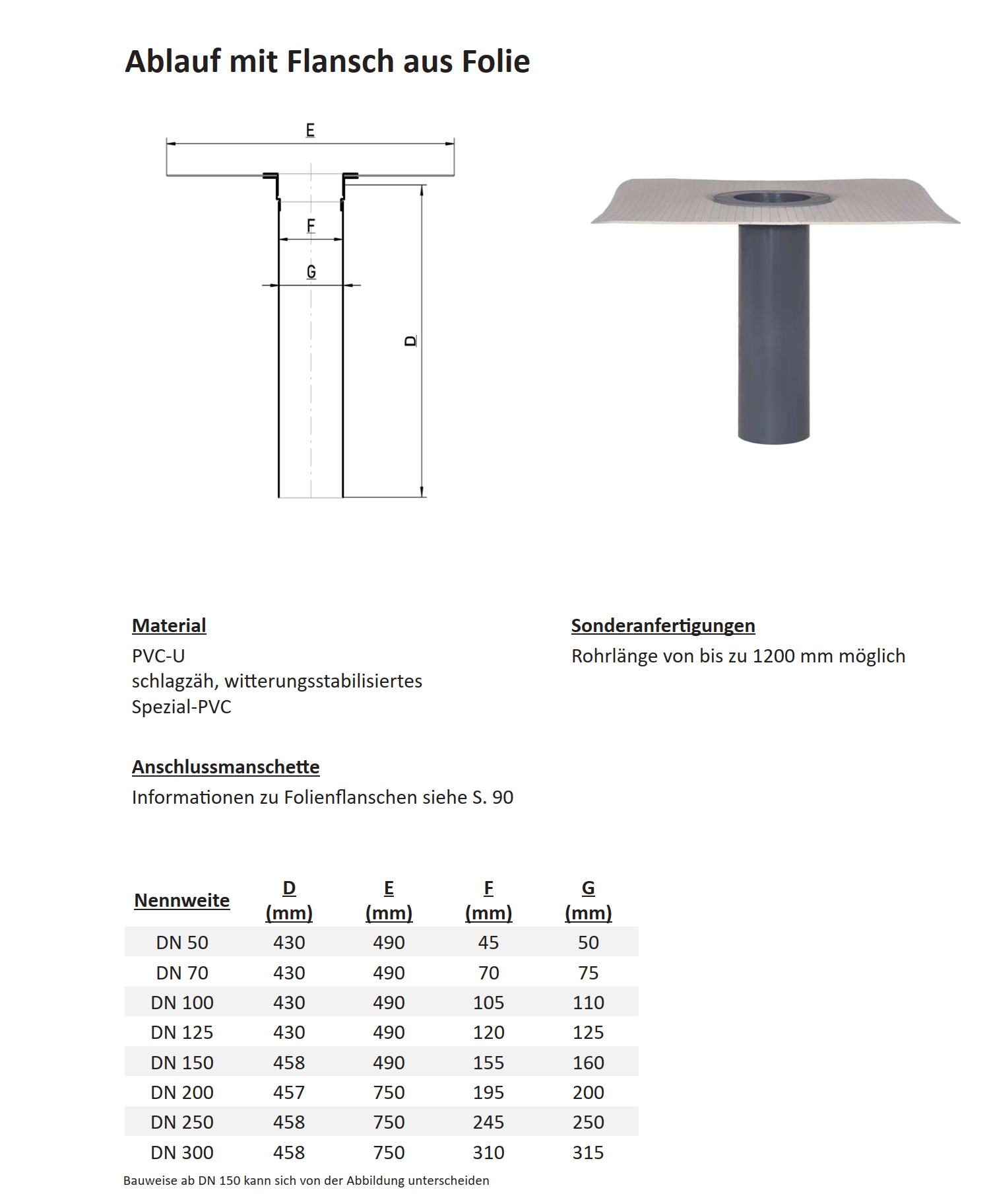 Produktinformation "Flachdachablauf DN 30 - DN 300"