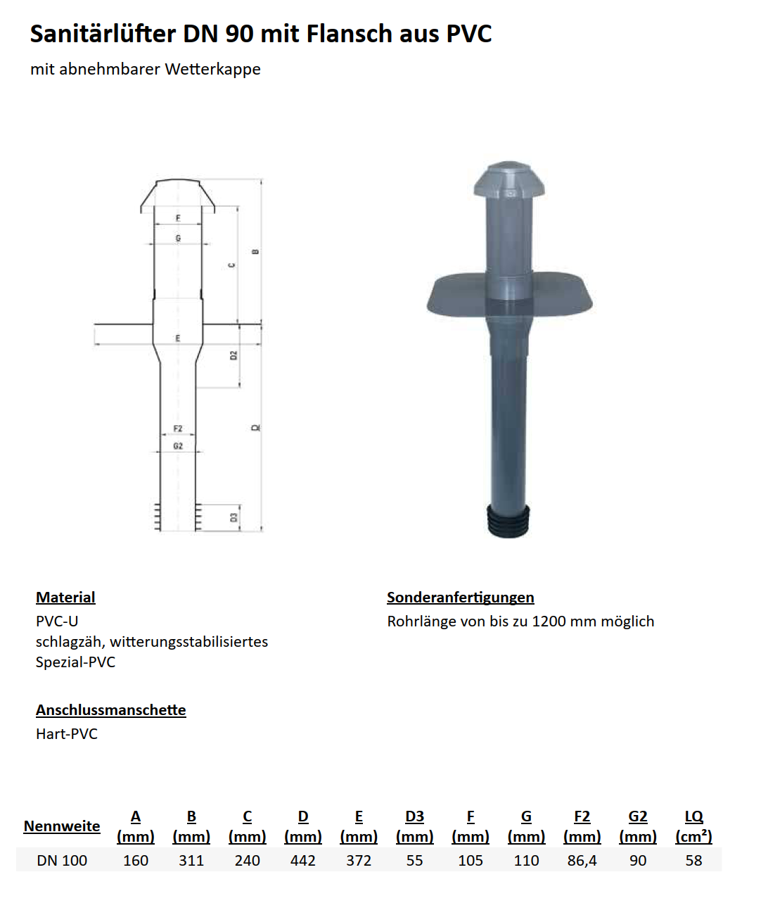 Zur Sanierung von DN 100/110 Lüftern - passend zum Einbau in Rohr-Innendurchmesser zwischen 91 und 105 mm.