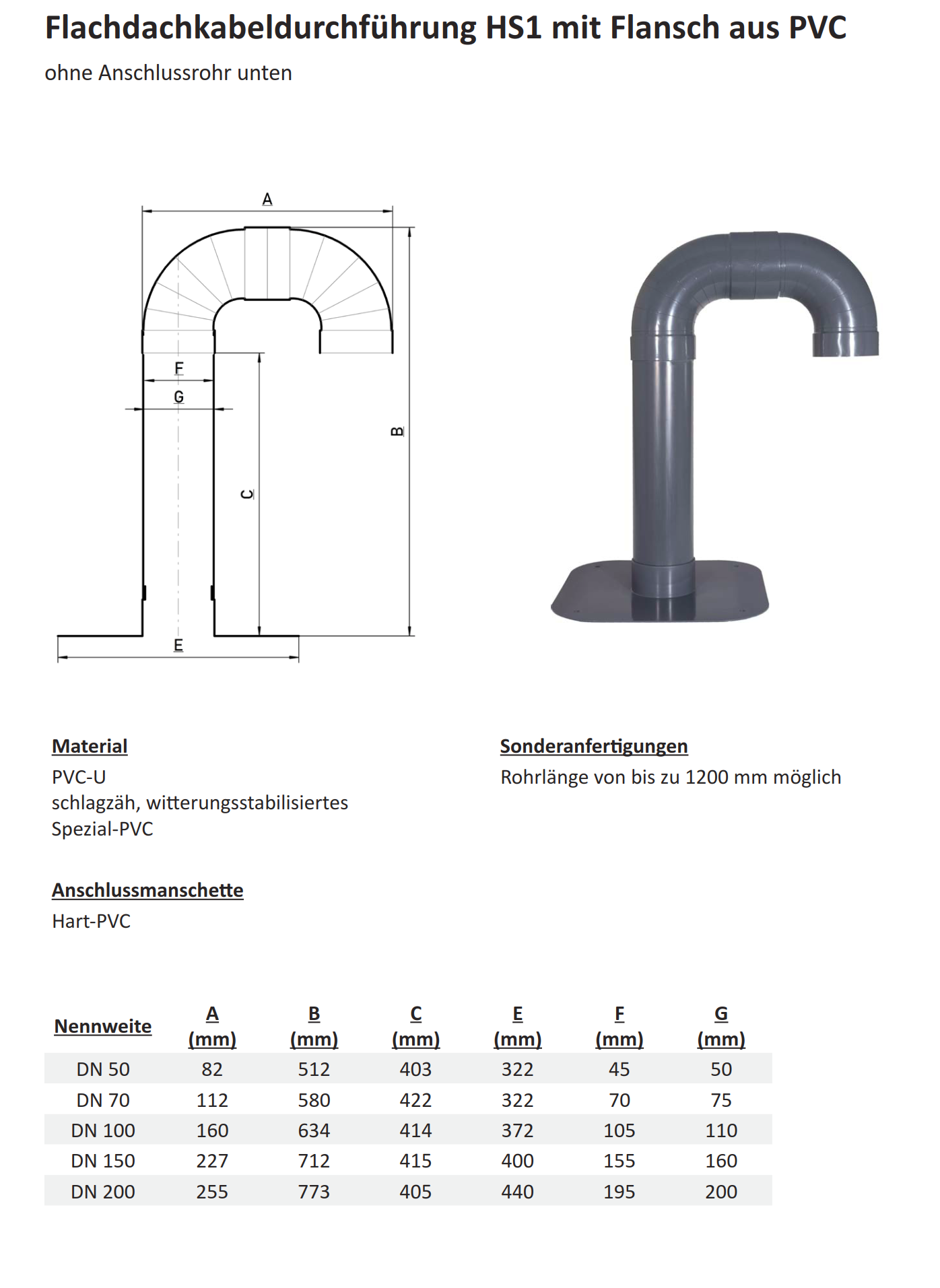 # Schwanenhals, Flachdachkabeldurchführung, Anschlussrohr, Dachdurchführung, Kabel, Antenne, Solar, Flachdach, DN 50, DN 70, DN 75, DN 100, DN 110, DN 150, DN 200