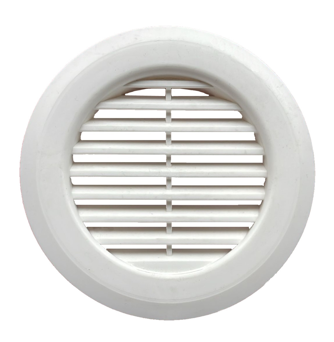 # Lüftungsgitter, Abluftgitter, Fertiggarage, Garage, Dunstabzug, Lüftungsrosette, Mauerlüfter, Raumlüfter, Raumentlüftung, Kunststoff, Estelit, Zapf, Rekers, Kplus, Grötz, Flansch, rund, weiß, schwarz, 90 mm, 125 mm